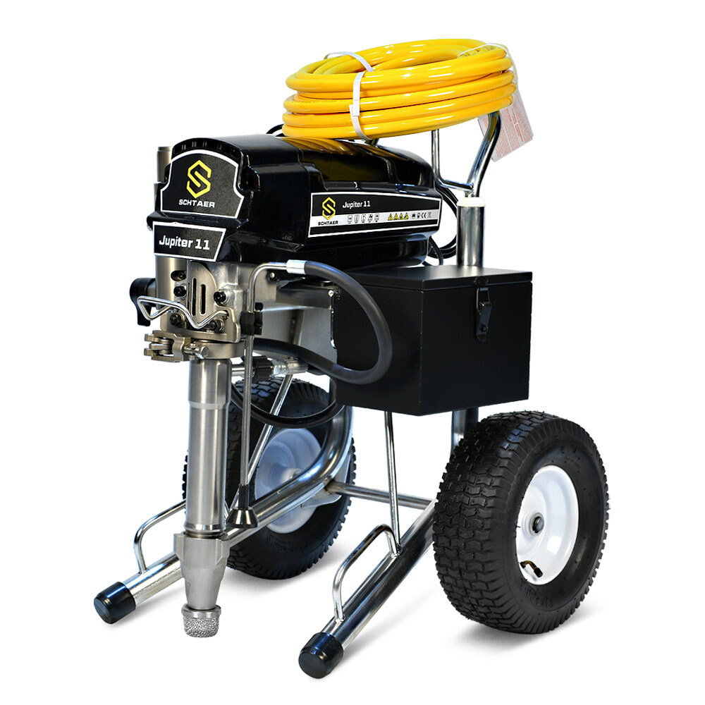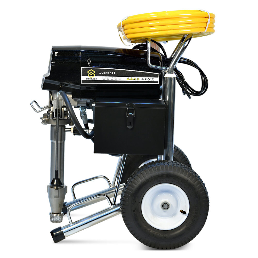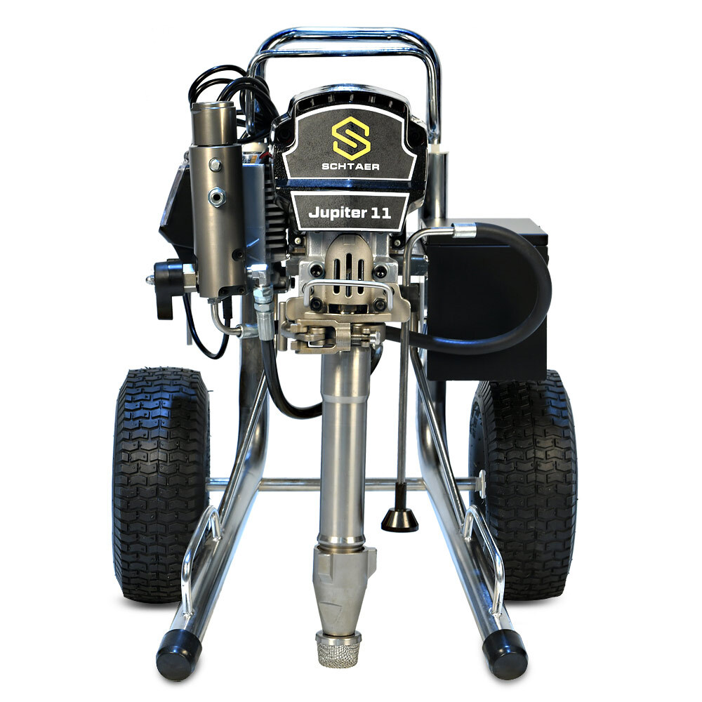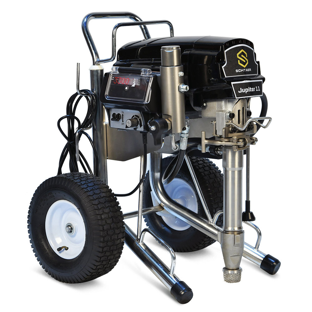 Schtaer Jupiter 11 — поршневой безвоздушный окрасочный аппарат, работает от электрического мотора 220 вольт, предназначен для распыления красок средней и высокой вязкости, огнезащитных составов, гидроизоляционных материалов, мастик, антикоррозионных красок, цинконаполненных материалов, шпатлевок, эмалей, грунтов, и других любых материалов, пригодных для нанесения через поршневой безвоздушный окрасочный агрегат.