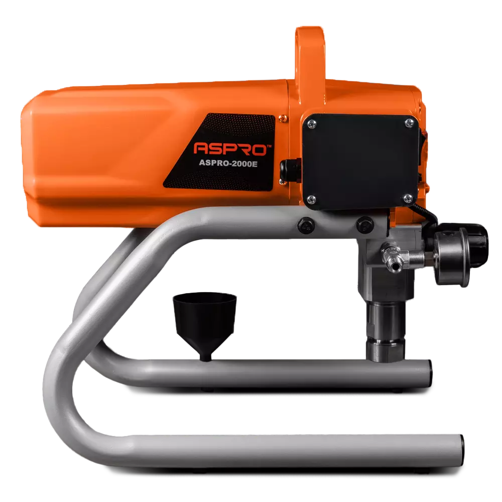 ASPRO –2000E работает по методу безвоздушного распыления лакокрасочных материалов. Это значит, что малярная жидкость нагнетается к окрасочному пистолету не при помощи воздуха, а при помощи высокого давления, создаваемого мощным плунжерным насосом.
